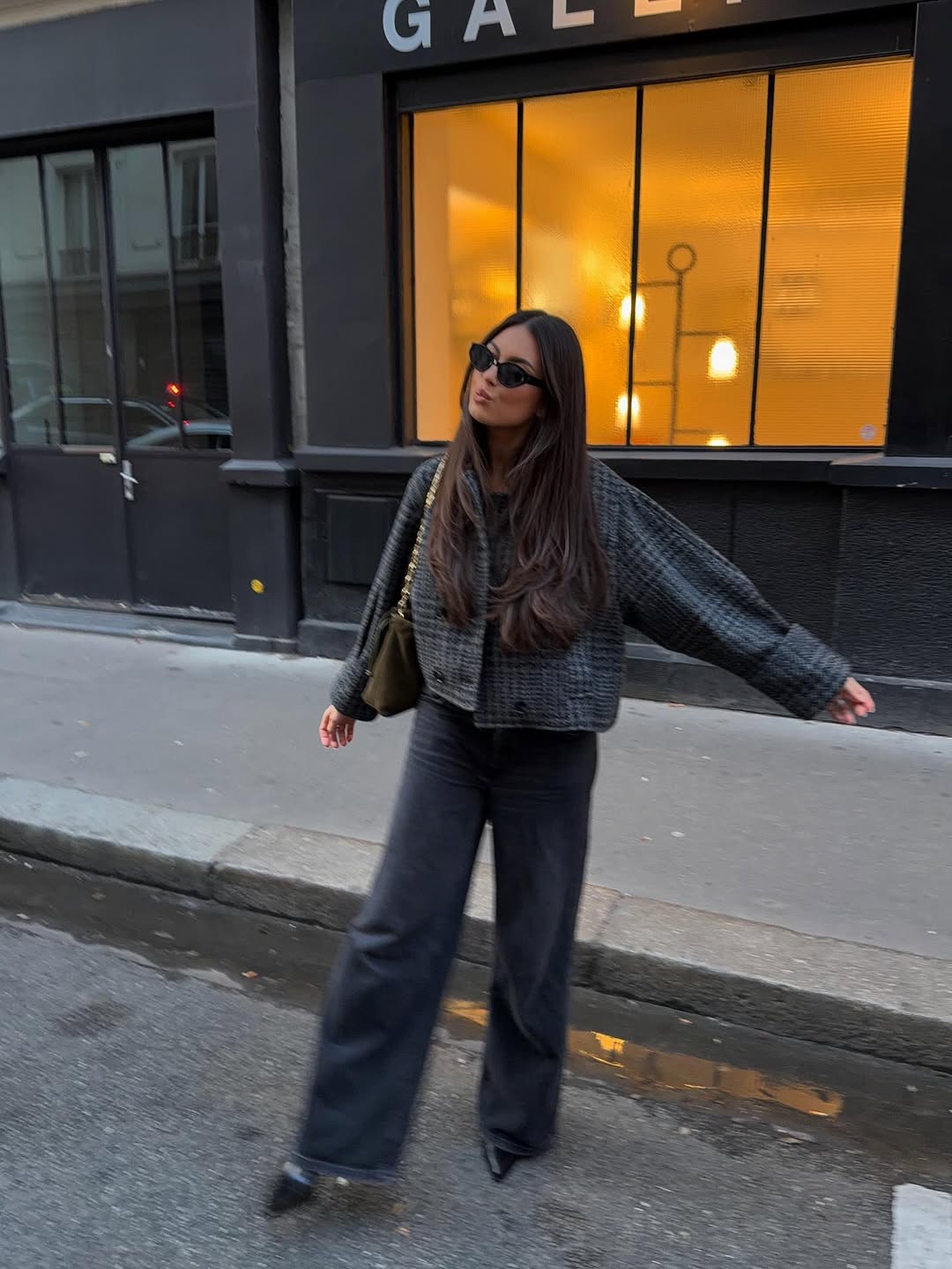 4. Oversized Houndstooth Jacket with Wide Leg Jeans
