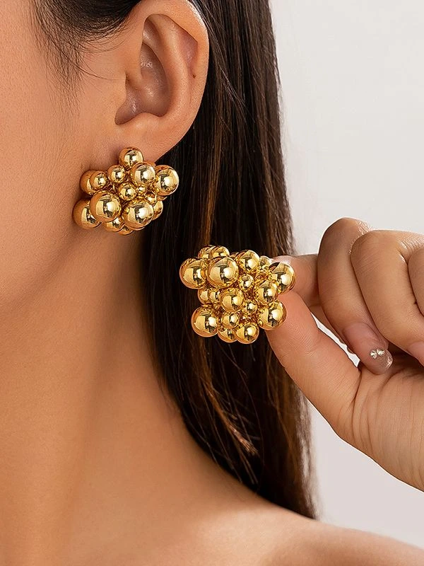 These eye-catching studs feature clustered golden spheres that create a luxurious, three-dimensional effect on your lobe. Each polished orb reflects light beautifully, forming a grape-like arrangement that adds instant glamour to any look. The design offers substantial presence without feeling heavy or uncomfortable.