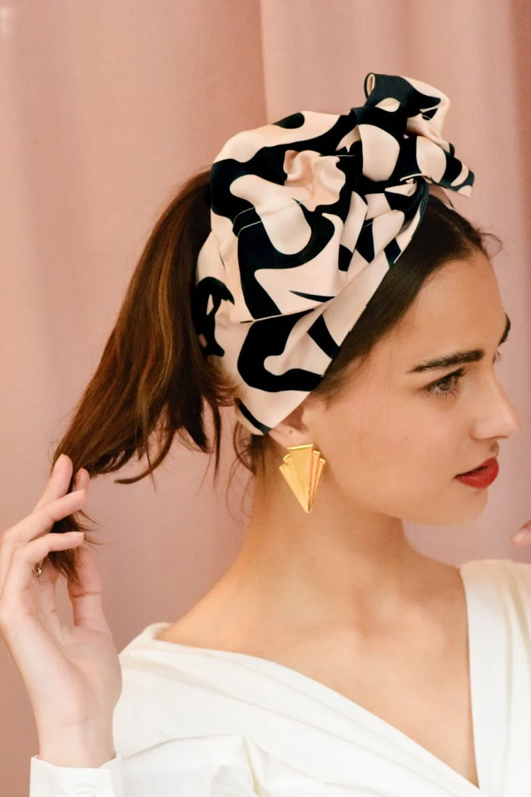 Paired with an off-shoulder top and statement headscarf, this look demonstrates how bold earrings can anchor an entire outfit. The architectural silhouette brings edge to classic styling, offering a contemporary twist that sparks curiosity and compliments wherever you go.