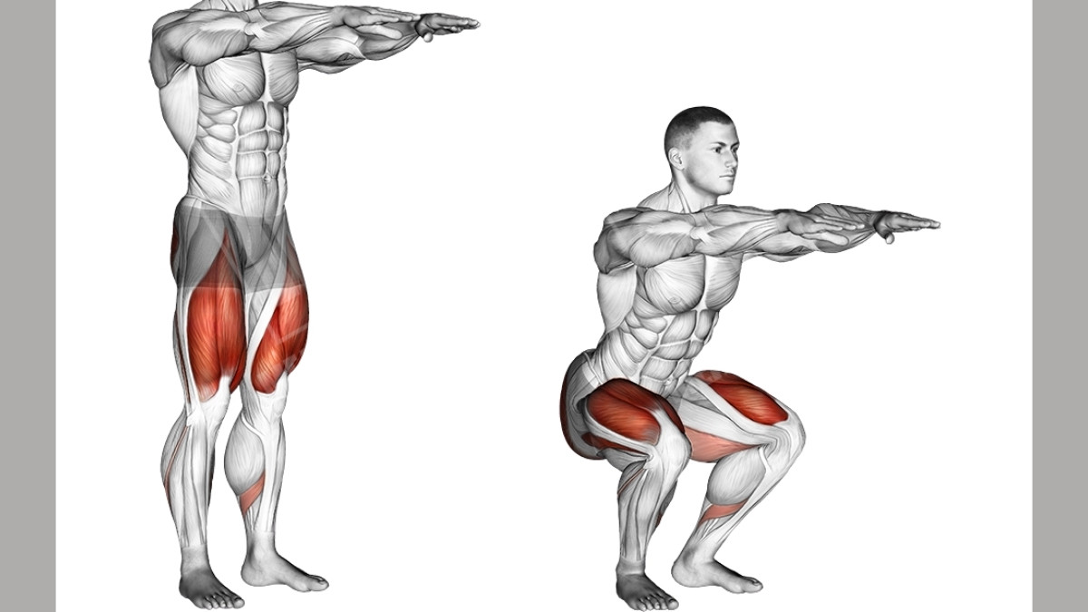 Try your best not to use your hands. Watch for a common mistake: letting your knees cave inward. Keep your chest up and your back straight.