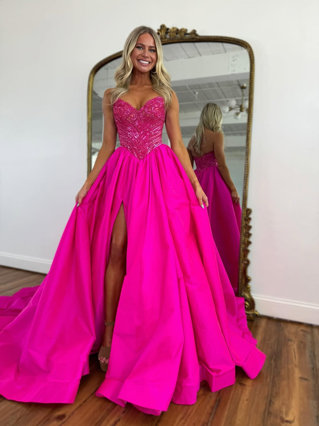 18. Hot Pink Beaded Ballgown with Thigh-High Slit