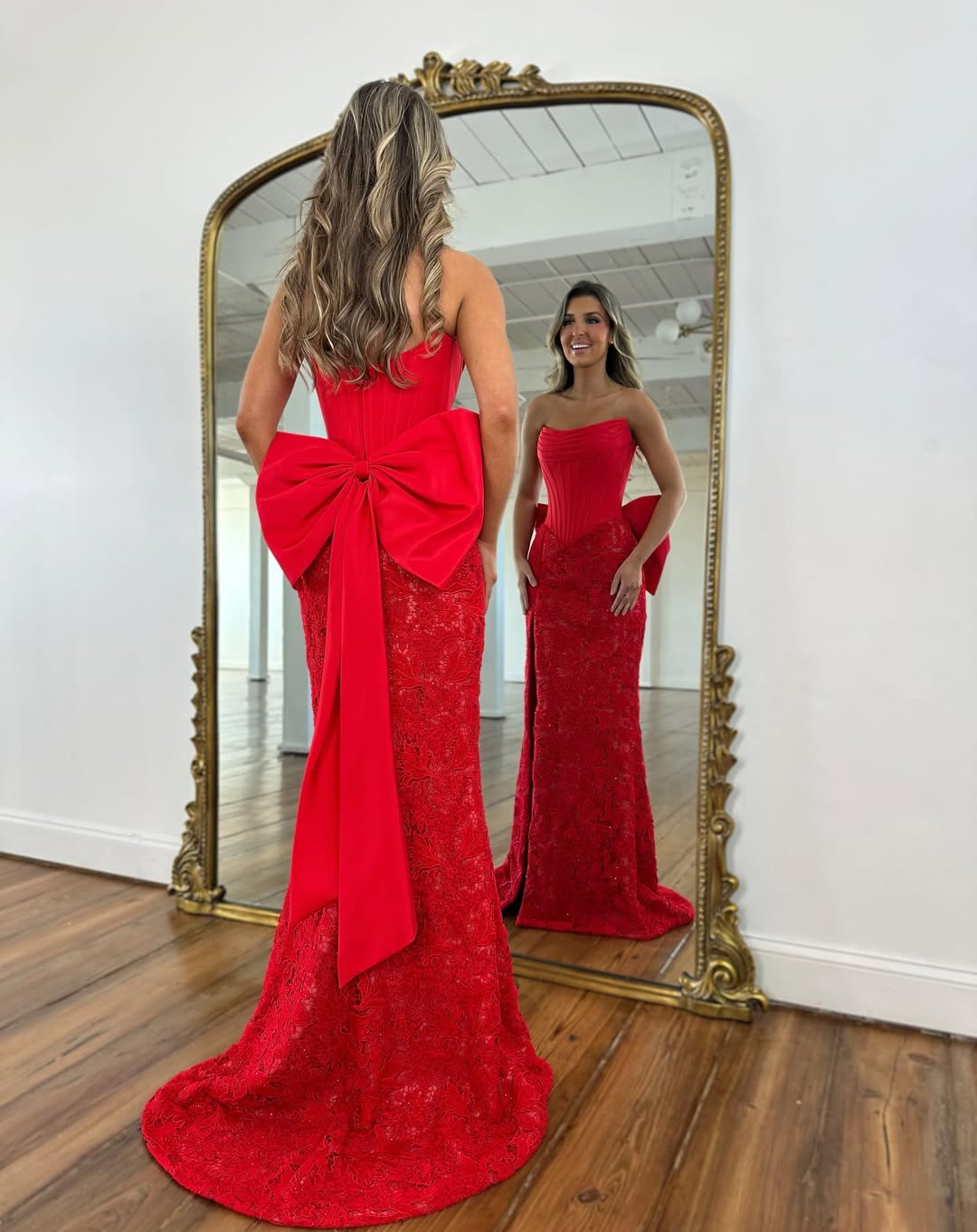 14. Red Lace Corset Gown with Oversized Back Bow