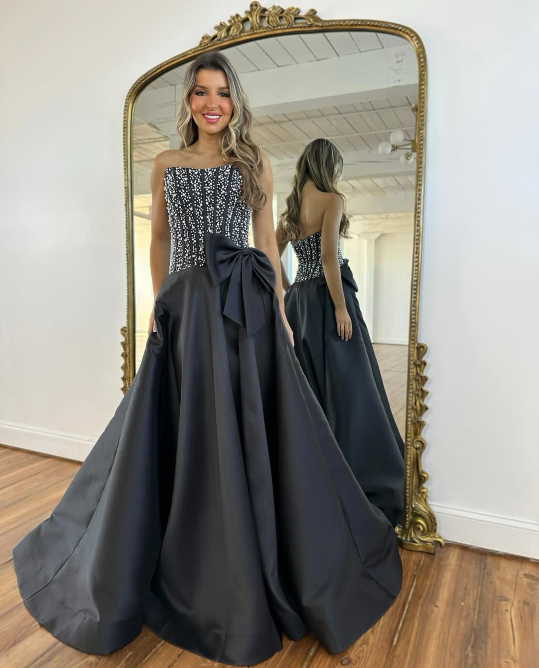 5. Black Crystal Bodice Ballgown with Statement Bow