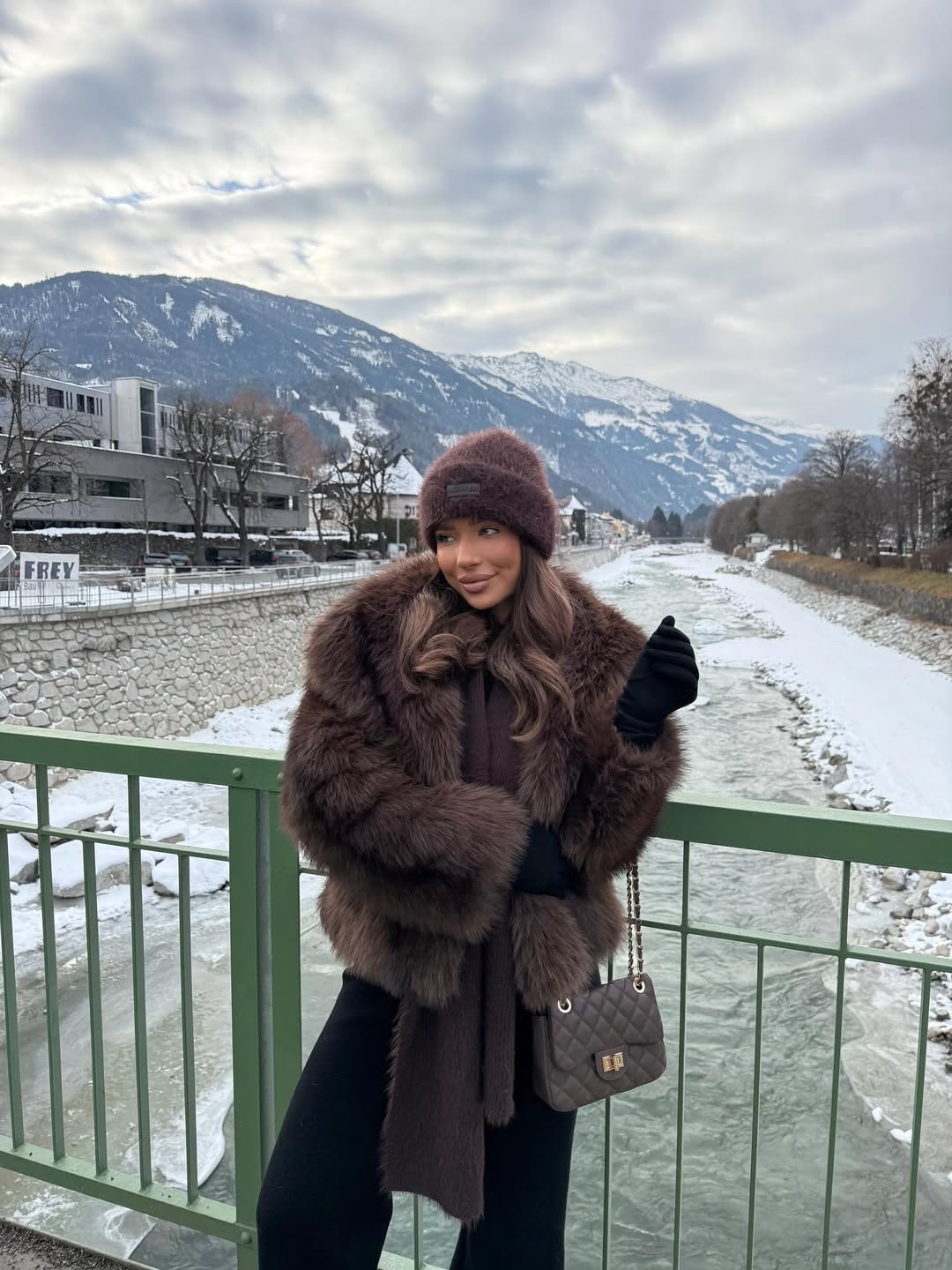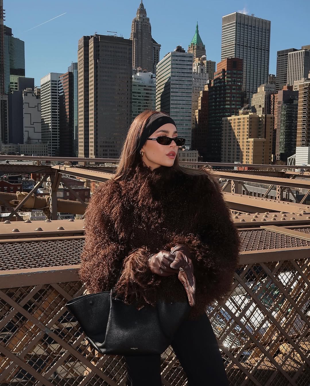 - Contrast light colored fur with black accessories like handbags and sunglasses to create striking visual interest in your winter looks