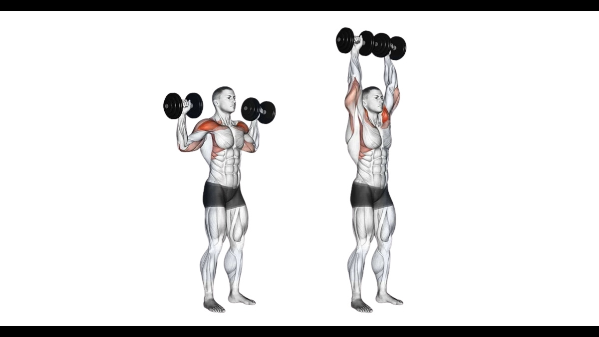 Your shoulders should stay relaxed and downânever shrugged toward your ears. If the weights cause you to lean forward, reduce the load. If you feel pressure in your lower back, stop and reset your posture. Never arch your spine to force the weight overhead. Control matters more than how heavy the weight is.