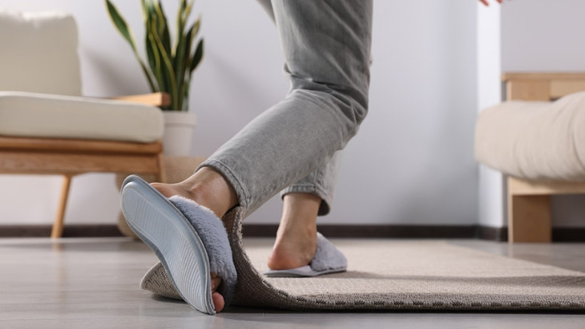 Loose rugs cause sudden slips. Secure them or remove them. Clear cords from walkways. Keep stairs free of shoes, bags, and clutter.