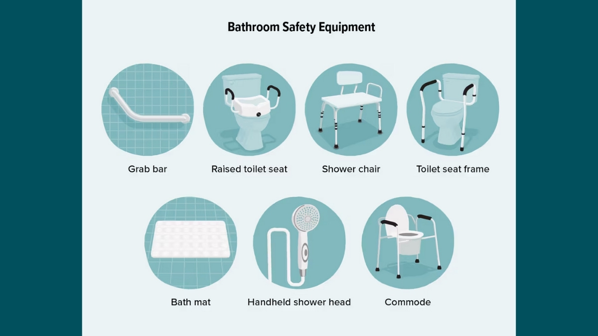 Wet floors cause falls. Use non-slip mats in the tub and shower. Add a shower chair if standing feels risky. A raised toilet seat can help too.