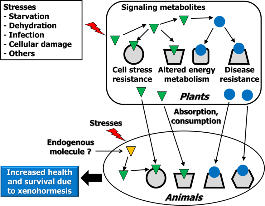This concept is called Xenohormesis. Plants can’t run from stress (e.g., intense sun, insects, poor soil). To survive, they produce a chemical arsenal of protective compounds called phytochemicals.