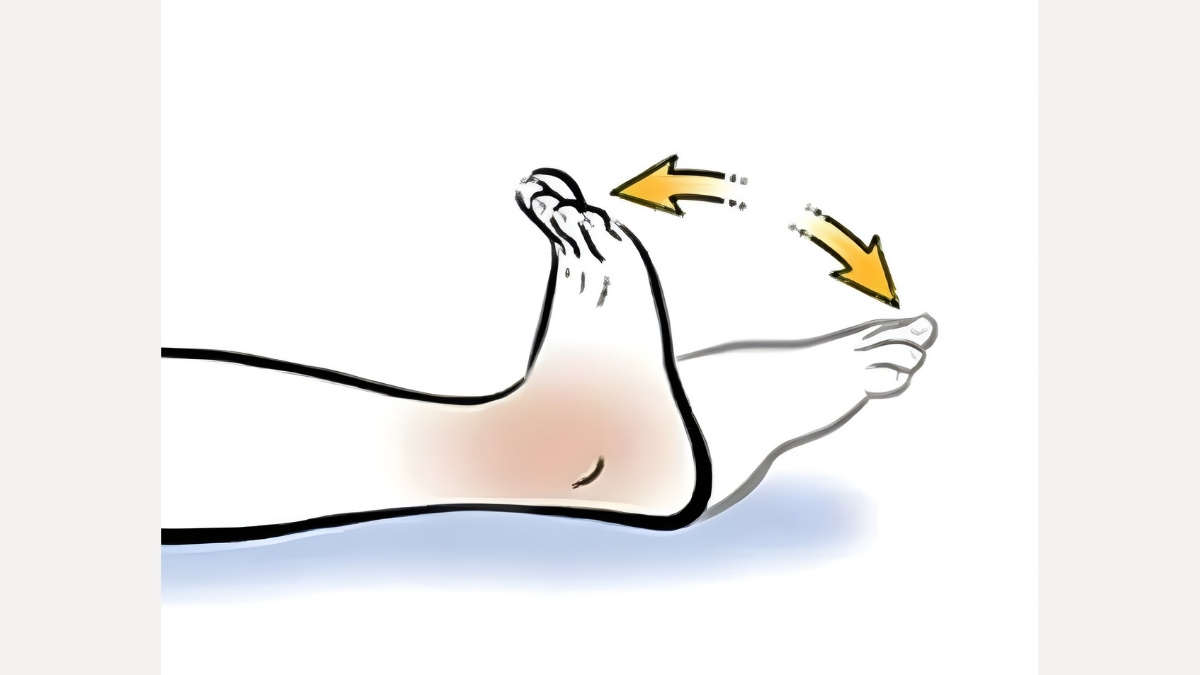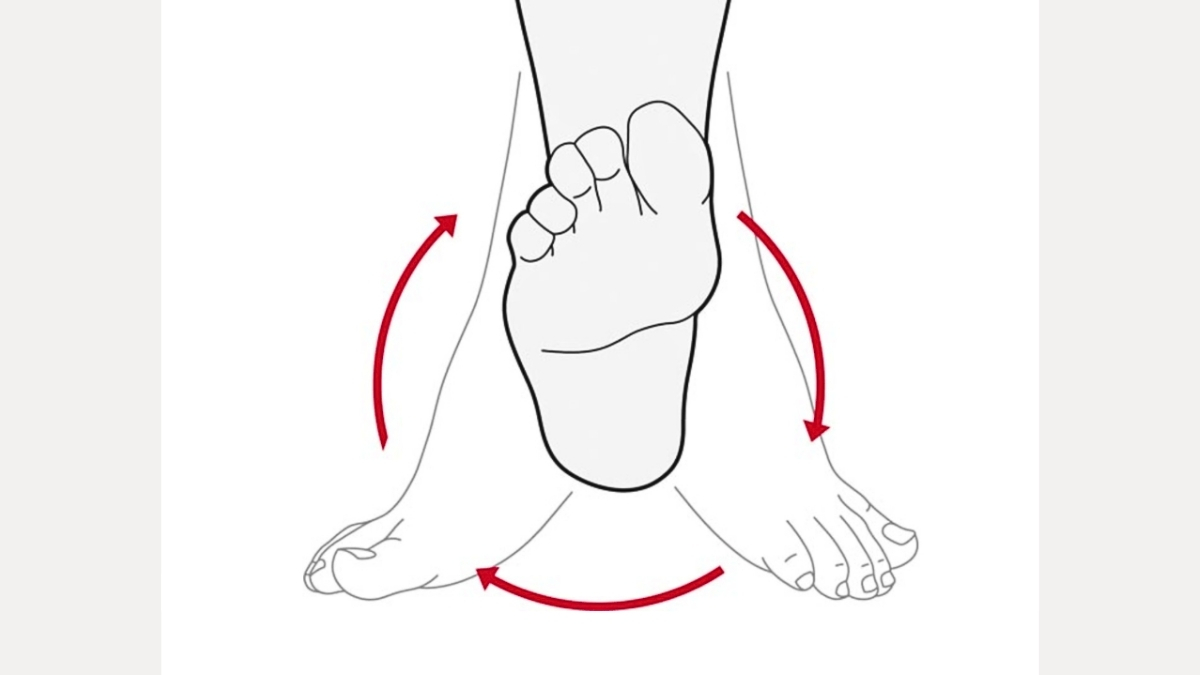 Here is how to do it: Sit upright. Lift one foot slightly off the floor. Slowly rotate your ankle in a full circle — 10 times to the right, 10 times to the left. Then do the same with the other foot.