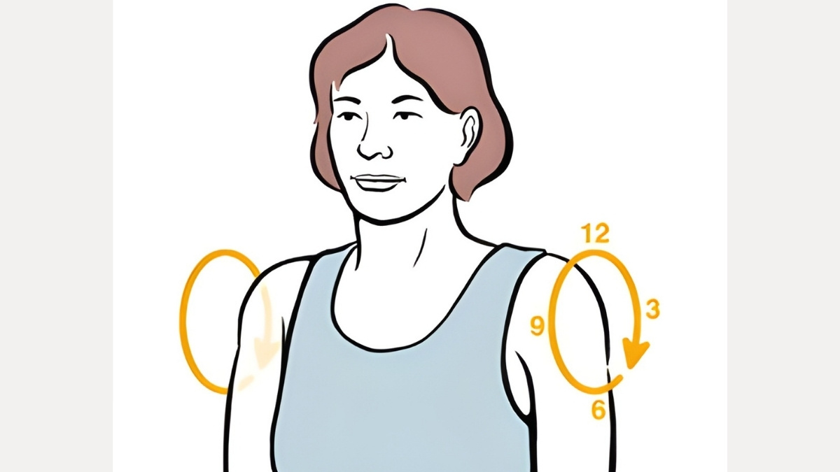 Shoulder rolls fix this fast. Sit tall. Slowly roll both shoulders backward in large circles — 5 to 8 repetitions. You will feel your chest open and your breathing deepen. That alone improves your balance readiness.