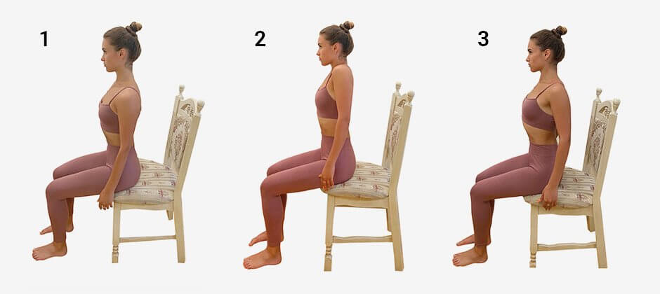 Safety & Modification: “The goal is to not use your hands at all”. If you are a beginner, “Place your hands on the arms or seat of the chair and push through your hands to help stand”.