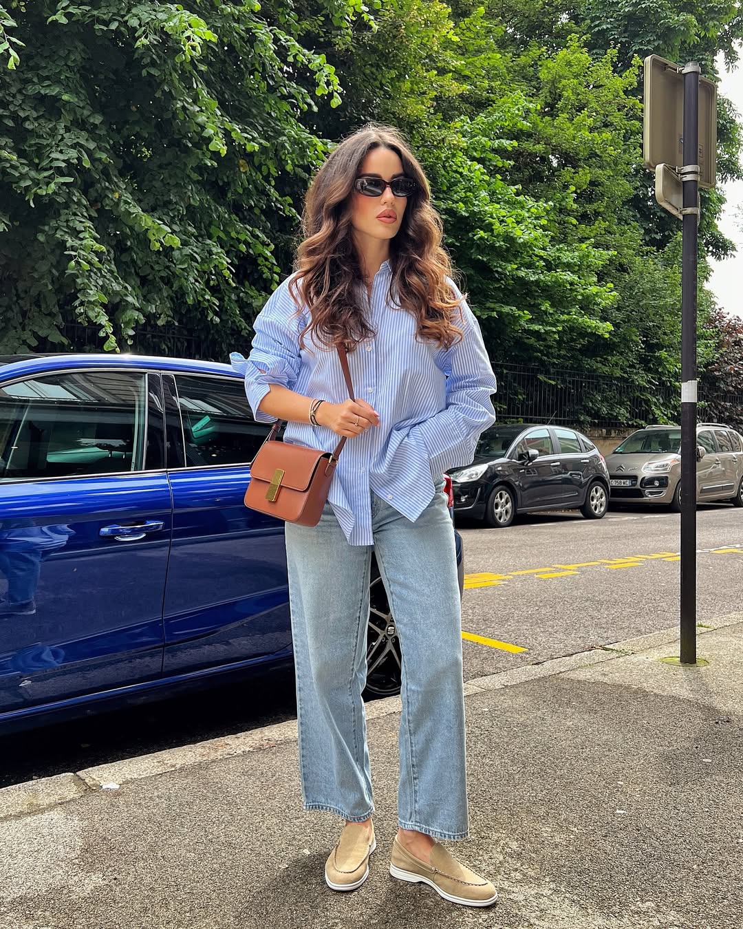 23. Blue Striped Oversized Shirt with Light Wash Denim