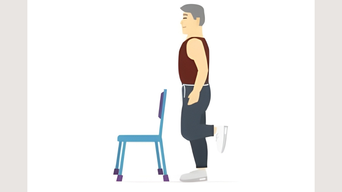 What It Is: Stand behind a chair and hold the back lightly with one hand. Lift one foot a few inches off the floor. Stand on the other leg. Hold for 10 seconds. Switch feet. That is one set. Work up to 30 seconds per side over time.
