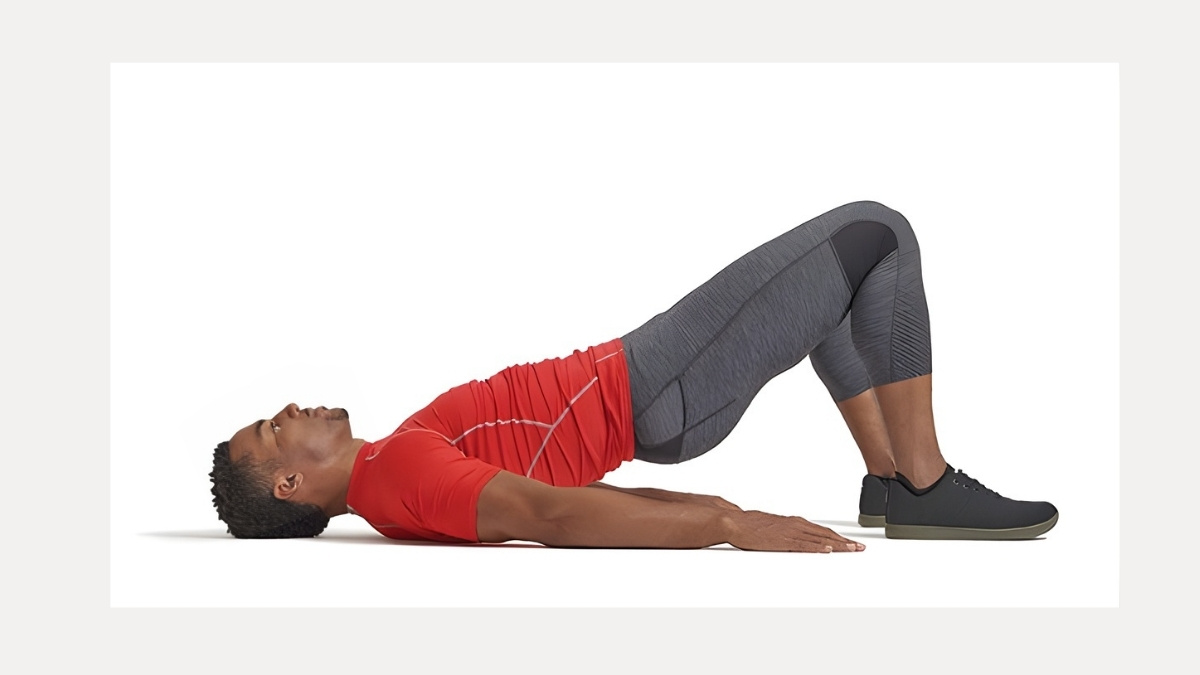 Physical therapists prioritize glute bridges because they also strengthen the hamstrings and the lumbar stabilizers — the deep muscles along your lower spine that keep you upright all day.