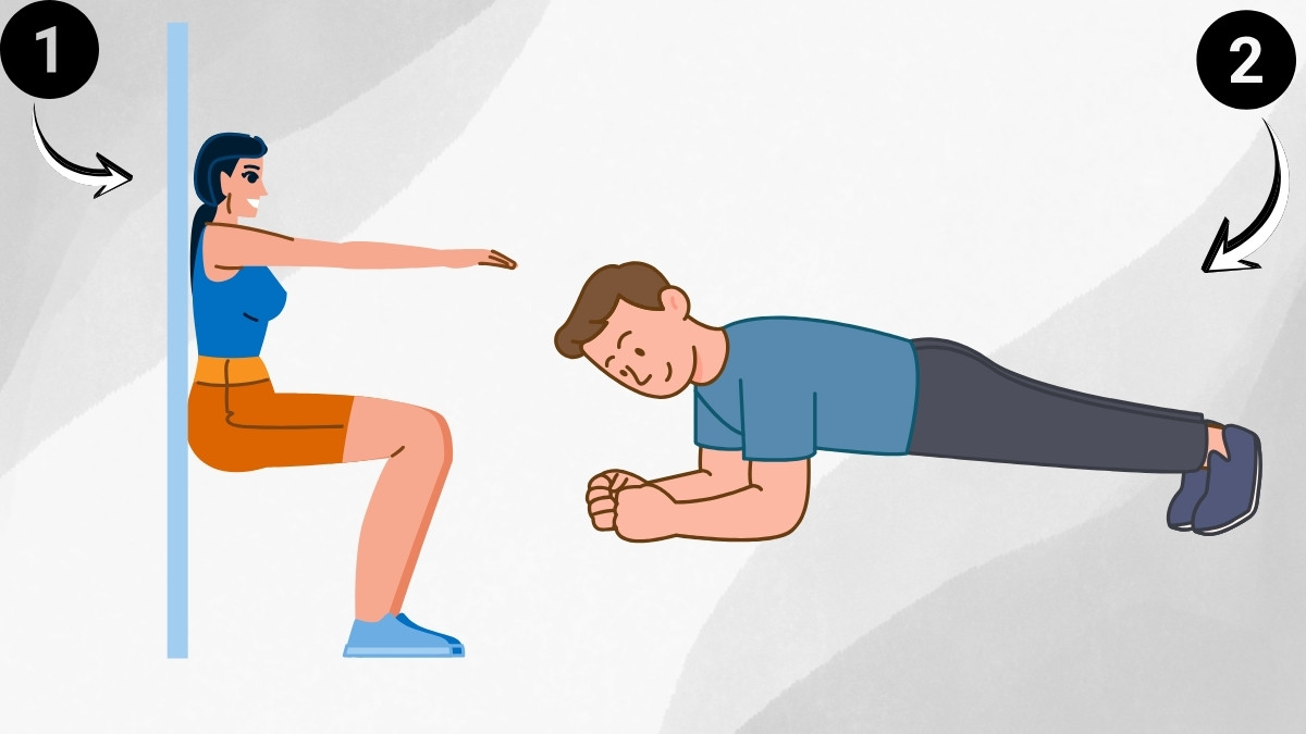 What to do: Hold a static position like a wall sit, plank, or squat hold without movement.