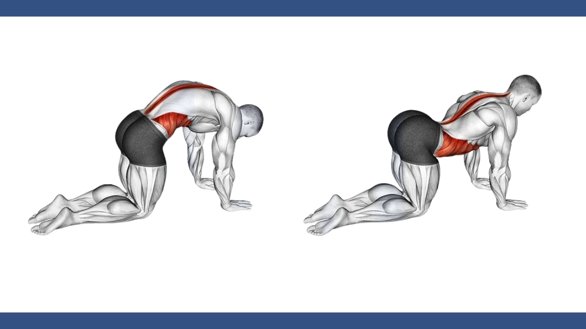 Exhale and round your spine, tucking your chin and tailbone (cat pose). Move slowly between these positions ten times, matching your breath to movement.