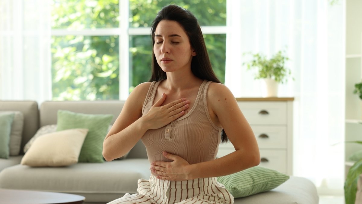 Still lying down or seated, breathe in for four counts. Hold for four. Breathe out for four. Hold for four. Repeat five to ten times. Slow breathing with extended exhalation stimulates your vagus nerve, which controls the relaxation response.
