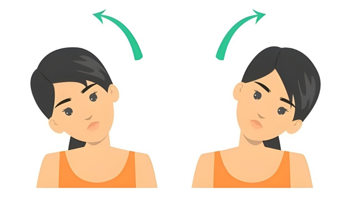 Sit or stand tall. Drop your right ear toward your right shoulder. Hold for 20 seconds while breathing deeply. You should feel a gentle stretch on the left side of your neck. Switch sides. Do this twice per side.