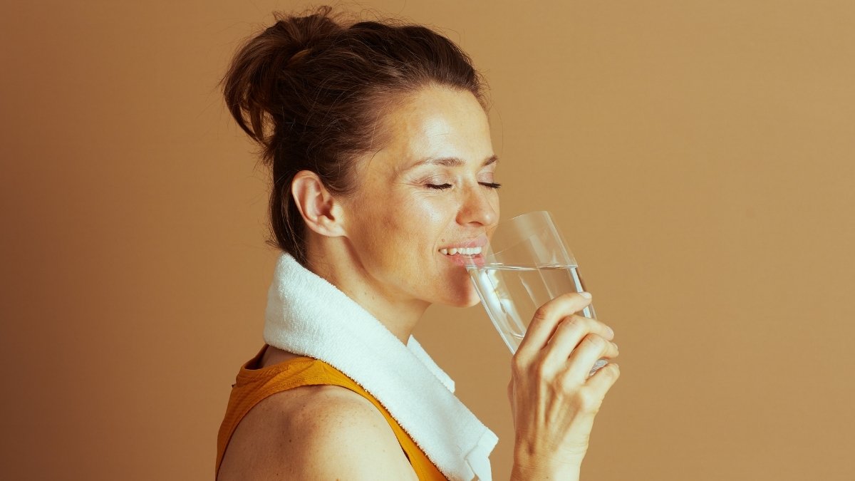 Drink water throughout the day even when you’re not thirsty. Keep a water bottle with you. Drink a full glass when you wake up. Have another glass with each meal. Sip water during exercise for people over 50.