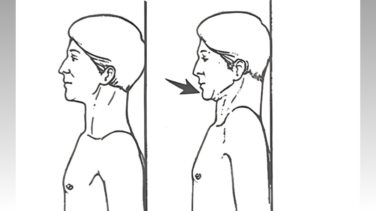 - Pull your chin straight back, like you’re making a double chin. Your head stays level—it doesn’t tilt down.