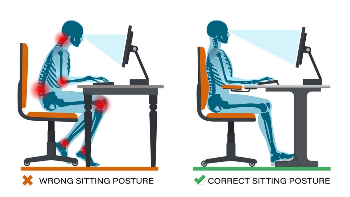 Set three alarms on your phone: 10am, 2pm, and 4pm. When they go off, do a full posture correction. Sit up tall. Roll your shoulders back. Tuck your chin. Reset your position.