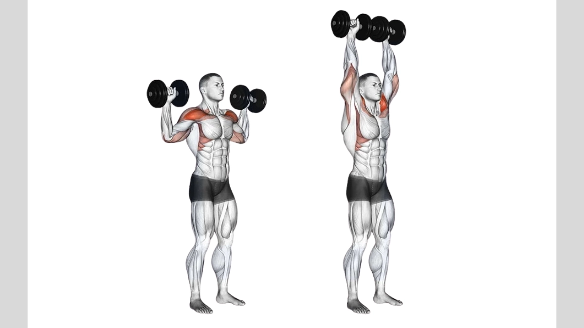 This final exercise loads your shoulders and spine while you’re standing. It also gives your wrists another round of bone-building stress. Your spine has to work hard to stay stable while you press weight overhead.