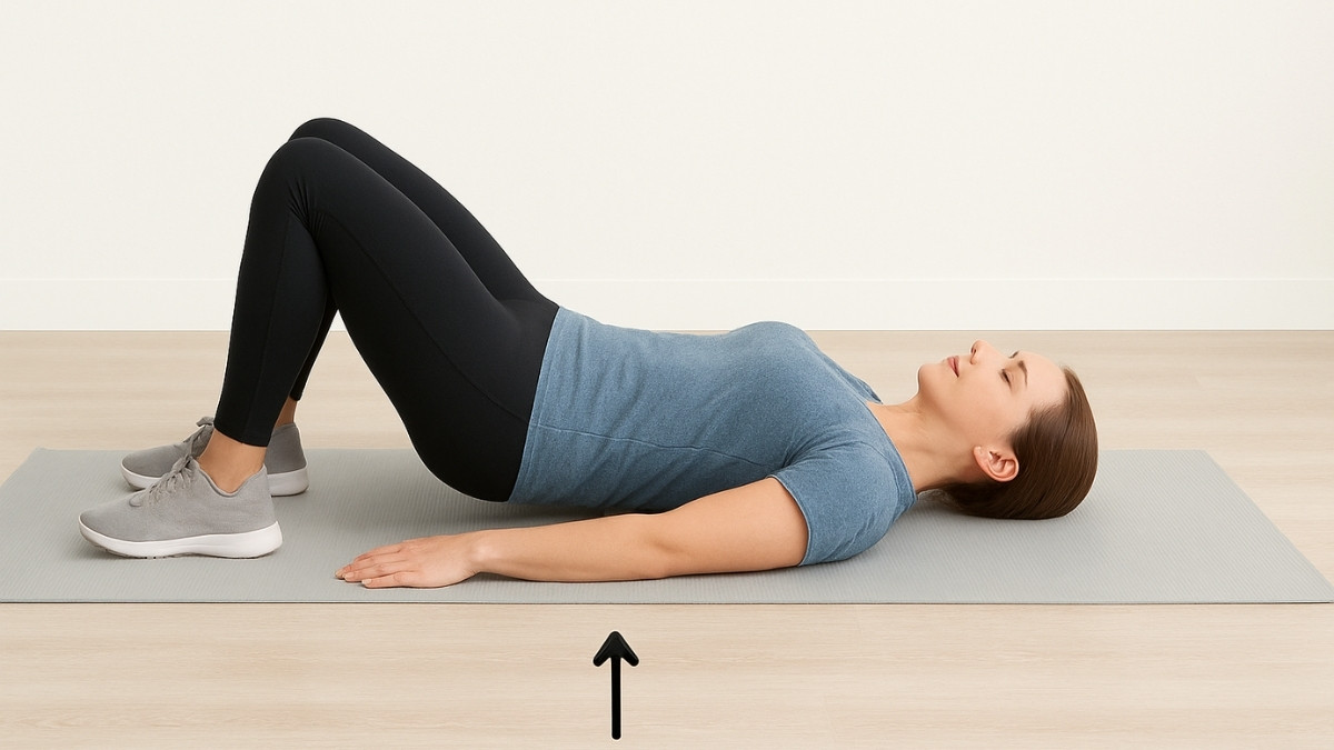 1. Lie on your back with your knees bent and feet flat on the floor, hip-width apart.