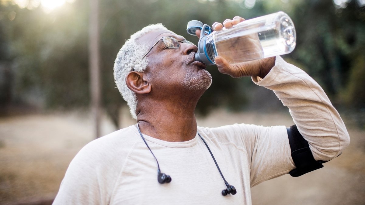 The National Academy of Medicine recommends at least 13 cups of fluid per day for men and 9 cups for women aged 51 and older.