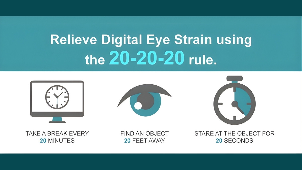 Here’s how it works. Every 20 minutes, look at something 20 feet away for 20 seconds. That’s it. This simple break relaxes your eye muscles and reduces digital eye strain immediately. It also helps you maintain a normal blink rate of 14-16 times per minute, which keeps your eyes from drying out.