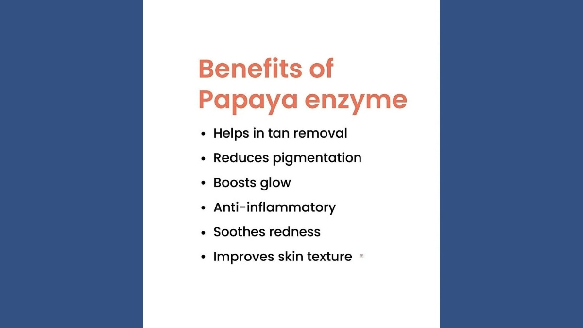 Papaya contains papain. This enzyme is unique to papaya. It breaks down damaged proteins and dead skin cells on your skin. Think of it as a gentle eraser for old, damaged tissue.