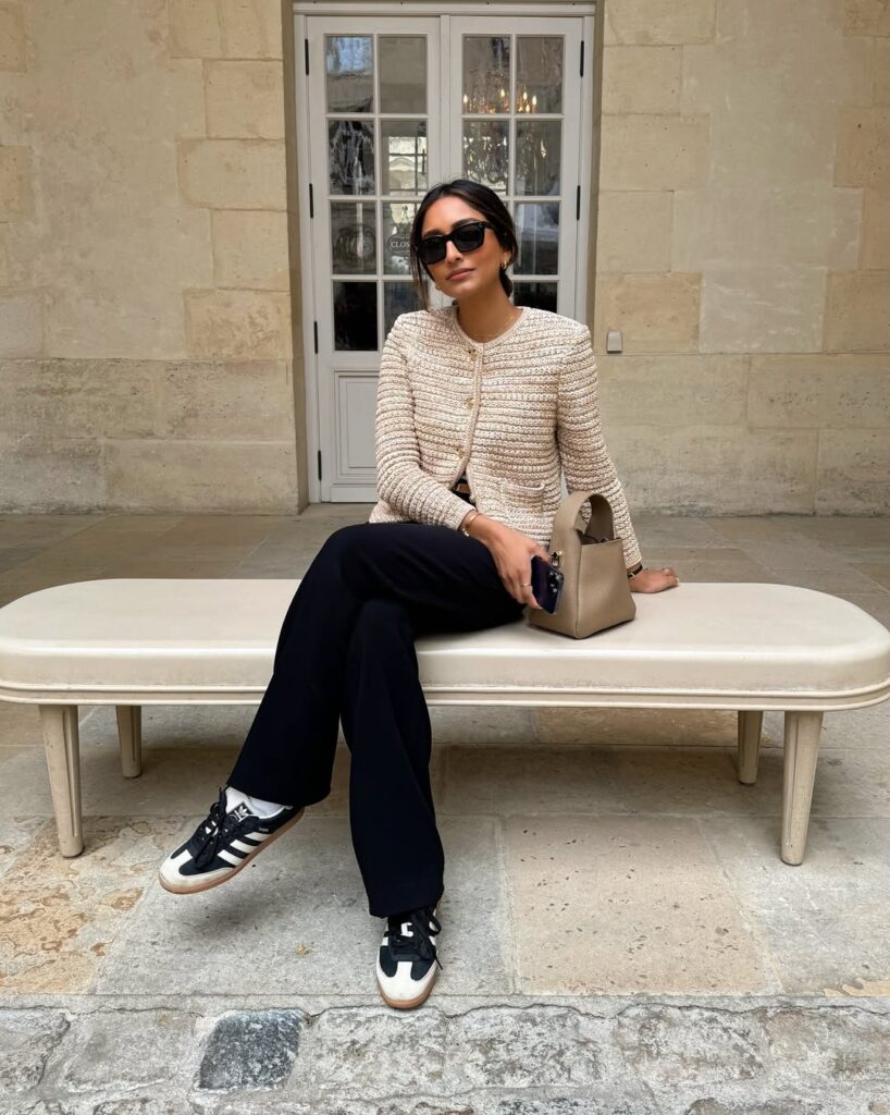 3. Cream Tweed Jacket with Black Wide Leg Trousers